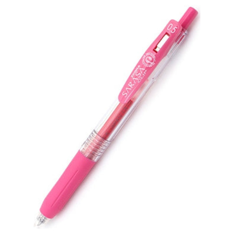 Zebra Sarasa Clip Gel 0.5mm Pink Rollerball PenThe Zebra Sarasa Push Clip gel pen is the pinnacle of modern gel pen architecture. A well designed body with a comforable rubber grip, a sturdy retractable 3.0mm tip and an oversized, large spring cllp that at