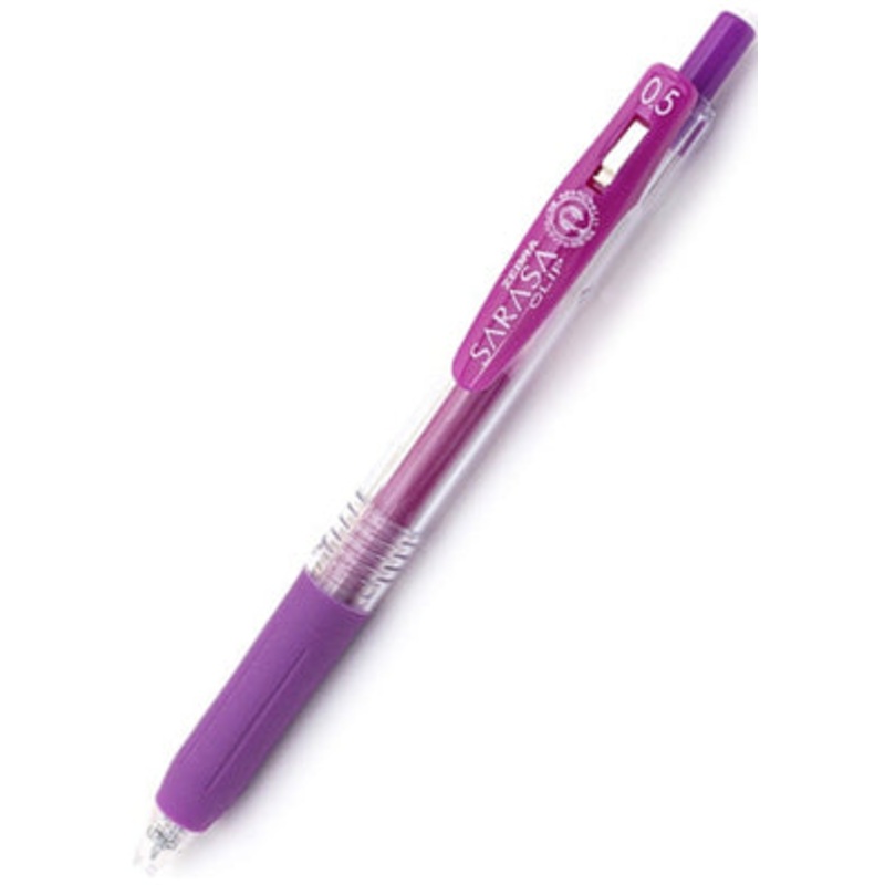 Zebra Sarasa Clip Gel 0.5mm Purple Rollerball PenThe Zebra Sarasa Push Clip gel pen is the pinnacle of modern gel pen architecture. A well designed body with a comforable rubber grip, a sturdy retractable 3.0mm tip and an oversized, large spring cllp that