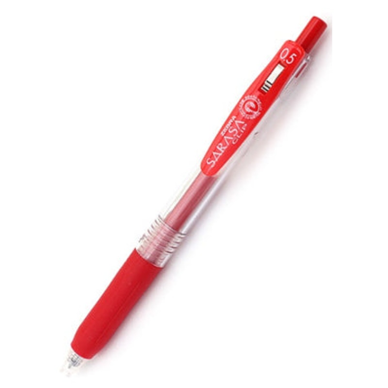 Zebra Sarasa Clip Gel 0.5mm Red Rollerball PenThe Zebra Sarasa Push Clip gel pen is the pinnacle of modern gel pen architecture. A well designed body with a comforable rubber grip, a sturdy retractable 3.0mm tip and an oversized, large spring cllp that att