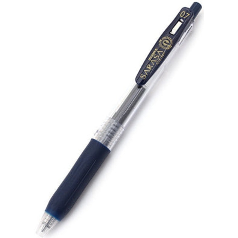Zebra Sarasa Clip Gel 0.7mm Blue Black Rollerball PenThe Zebra Sarasa Push Clip gel pen is the pinnacle of modern gel pen architecture. A well designed body with a comforable rubber grip, a sturdy retractable 3.0mm tip and an oversized, large spring cllp t