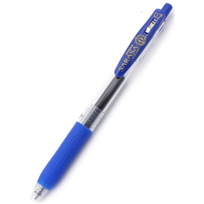 Zebra Sarasa Clip Gel 0.7mm Blue Rollerball PenThe Zebra Sarasa Push Clip gel pen is the pinnacle of modern gel pen architecture. A well designed body with a comforable rubber grip, a sturdy retractable 3.0mm tip and an oversized, large spring cllp that at