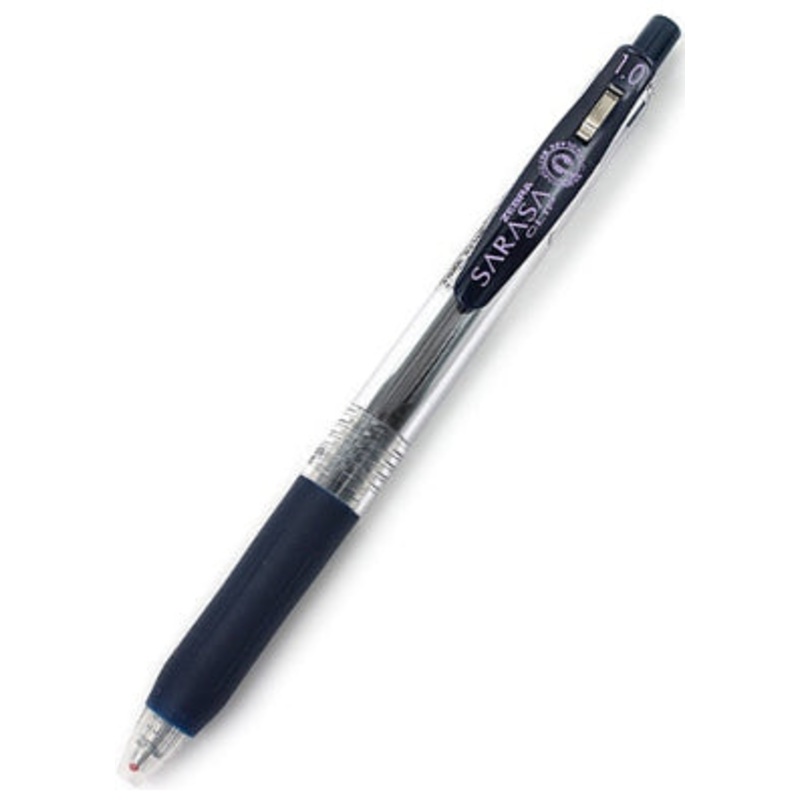 The Zebra Sarasa Push Clip gel pen is the pinnacle of modern gel pen architecture. A well designed body with a comforable rubber grip, a sturdy retractable 3.0mm tip and an oversized, large spring cllp that attaches just as easily to thick notebooks and bo