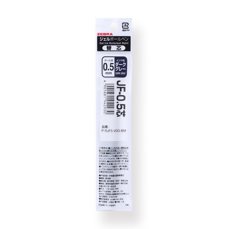 Filled with Zebra's water-based pigment gel ink. Vivid in color and smooth-flowing, the ink delivers consistent, crisp lines. It is water-resistant and has high lightfastness.Matching with the following compatible models, including JJ15, JJ15 limited editi