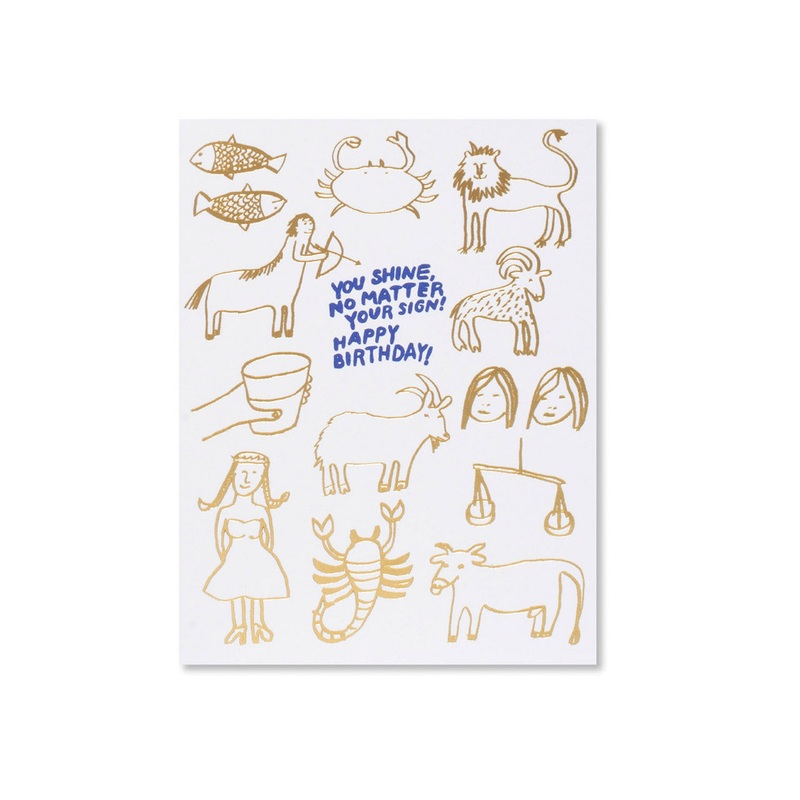 Send some astrological love to a special person on their birthday with the starry Zodiac Birthday Card from Egg Press. Egg Press uses paper products that are either entirely tree-free (100% cotton) or contain a minimum of 30% recycled content.